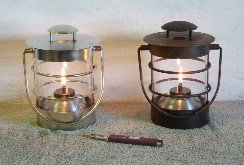 The reservoirs are made of galvanized steel with a screw type wick holder. The wick/flame is adjusted with a